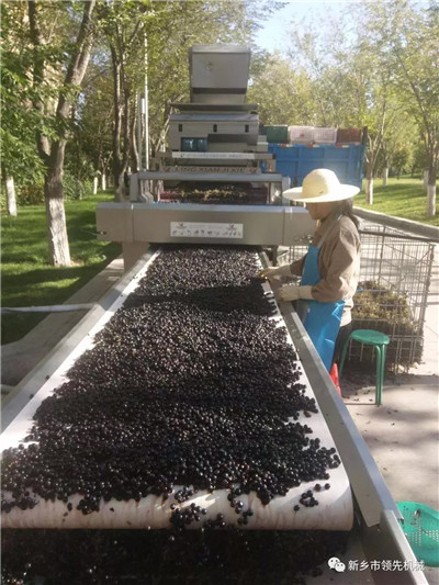 4、粒选-宁夏网带检果机:将除梗后的葡萄粒在网带检果机上进行第二次人工精筛,去除小果梗和霉烂果。
