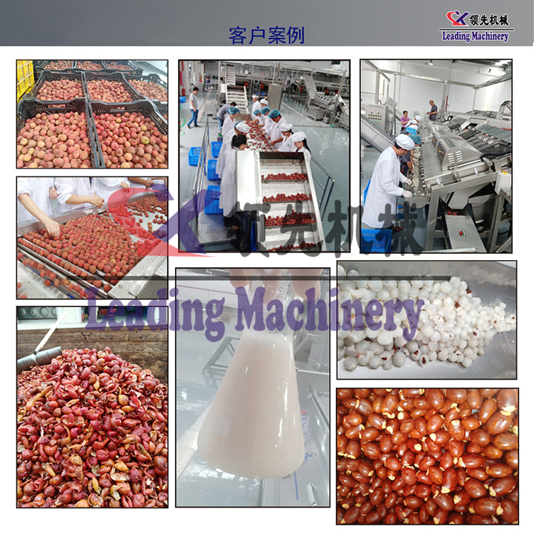 荔枝加工生产线功能有:去枝条系动,挑选清洗系统,去皮去核系统,榨汁系统,过滤系统,杀菌灌装系统等部分。