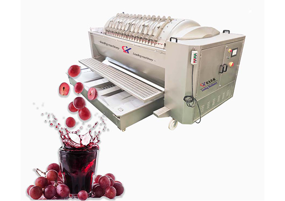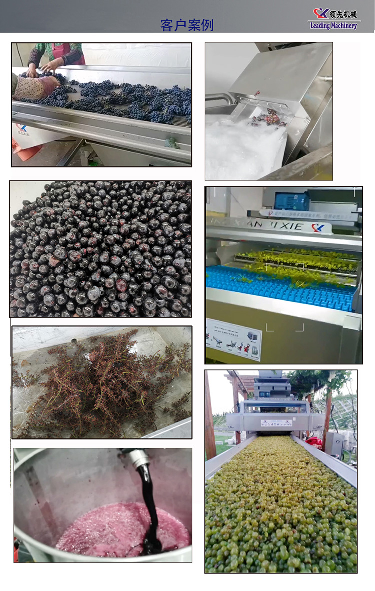 它的优点是:全自动化操作,产量大,速度快,工作效率高,并且先单独除梗,再对葡萄颗粒进行果皮、果核、果汁进行分离,这种工艺设计不会被果梗及杂质进入到果汁,从而影响了果汁的品质,它可以自动分离出部分碎果梗及生青果粒等杂质,提高了葡萄果汁的品质,保留了葡萄的原有风味。